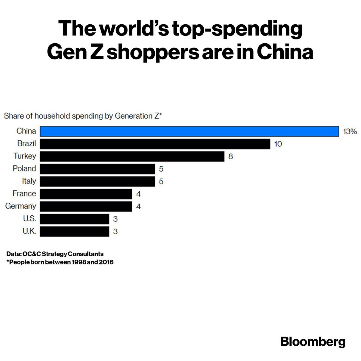 ...China’s Gen Z consumers account for 13 percent of household spending, more than four times that of their U.S. peers. They increasingly spend that cash via social media"