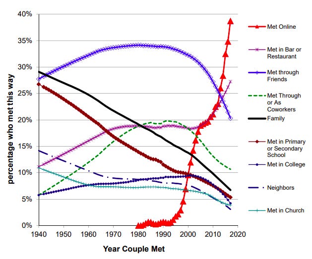 What’s sad is the dating trend of “met through friends” peaked in the 1970s/80s. What happened?
