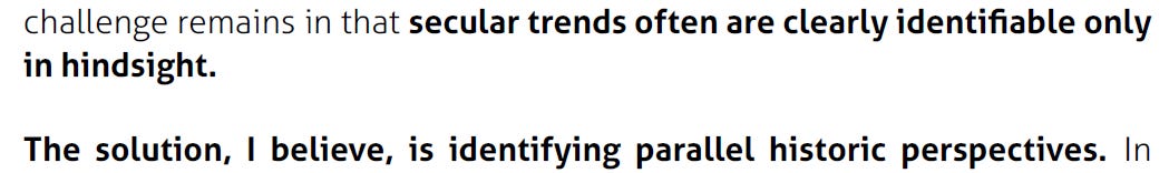 Tuur Demeester’s Adamant Research piece relies upon the same device as the Social Capital in its framing of a economic and societal context for his analysis: history.
