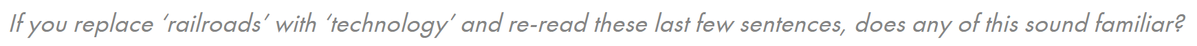 I think of this share from Jamie Catherwood. Notice the use of the word “railroad”.
